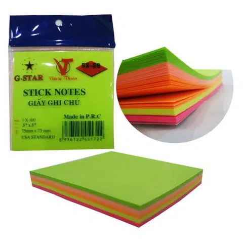 Tên sản phẩm: Giấy Note G‑Star – 75 × 75 mm – 5 màu vuông